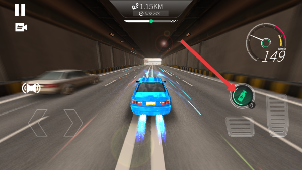 3、行駛過程中,能使用氮氣加速道具,點擊氮氣按鈕,車輛會短時間內快速提速,助力更快完成行駛距離。