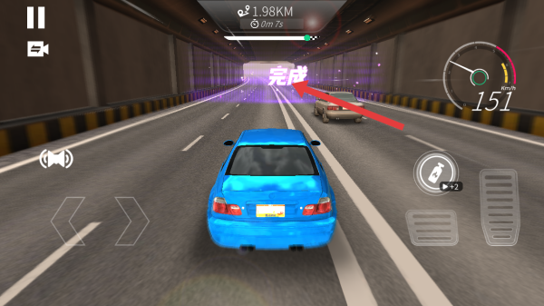 4、當成功規定時間內行駛完2km,屏幕會顯示完成字樣,代表順利完成此次極速駕駛挑戰任務。