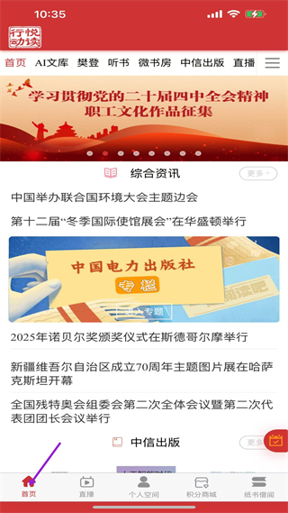 2、進入平臺首頁,能瀏覽綜合資訊與出版社專欄,涵蓋政策學習等內容,點更多可看全量信息,按需查看相關內容。