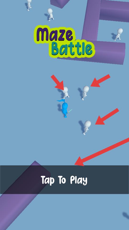 1、進入游戲初始界面,點擊開始游戲按鈕,操控藍色角色,準備在迷宮中與白色小人互動。