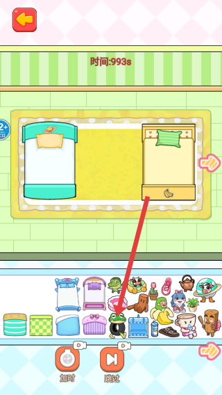 3、裝扮過程中可不斷挑選下方不同的物品,比如更換床的樣式、添加小柜子等,打造出自己喜歡的房間局部風格。