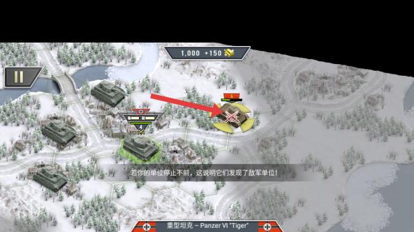 3、進入戰斗場景,屏幕提示您的單位停止不前,這說明它們發現了敵軍單位,操控部隊,應對出現的敵軍單位。