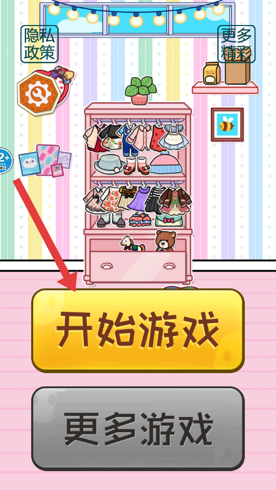1、游戲初始界面,有開始游戲和更多游戲按鈕,點擊開始游戲按鈕,即可進入游戲,開啟布置房間的任務。