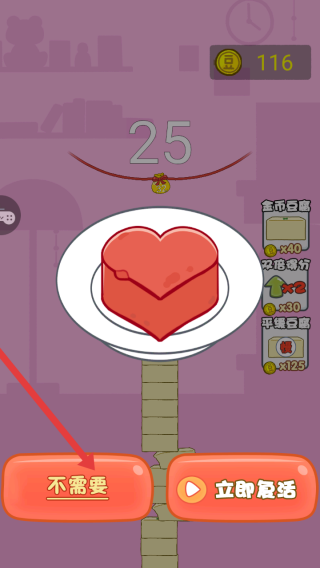 4、若游戲失敗,會出現包含不需要和立即復活的界面,可選擇是否復活,繼續游戲挑戰。