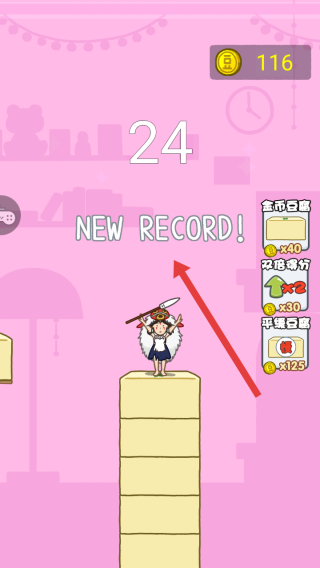3、游戲界面操控角色跳躍,不斷挑戰新高度,屏幕會顯示NEWRECORD,記錄新的游戲成績。