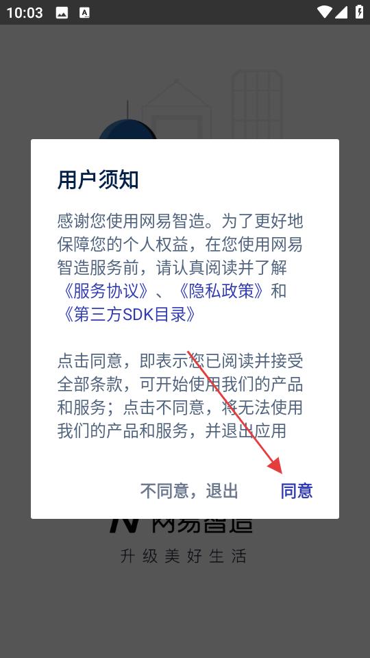 1、下載安裝完成后進入,需在用戶協議和隱私政策界面點擊同意,接受相關條款后才能進入應用。