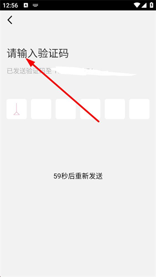 3、輸入手機號后進入驗證碼輸入頁面,頁面提示已發送驗證碼至對應手機號,需輸入框填寫收到的驗證碼,同時等待倒計時結束可重新發送。