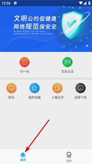 2、點擊首頁,主打掃一掃遠程實名驗證,適用于網吧、賓館等場景,突顯安全快捷特性。