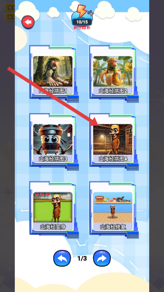 2、關卡選擇界面,選擇帶有山海經元素的關卡,進入后會看到多個具體的拼圖關卡,比如山海經拼圖4等。