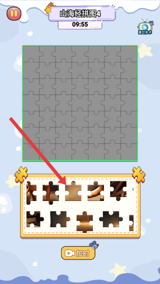 3、選定山海經拼圖4等具體關卡后,進入拼圖界面,上方是待完成的拼圖區域,下方是散落的拼圖碎片。