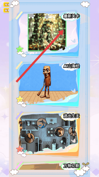 1、進入游戲,點擊開始游戲,來到關卡選擇界面,能看到最新關卡等不同類型的關卡選項,準備開啟拼圖挑戰。