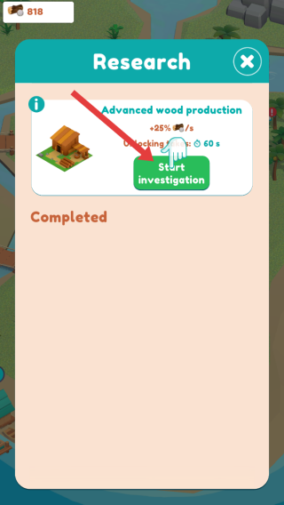 2、還能進行研究,比如點擊開啟高級木材生產研究,完成研究后可提升木材生產效率,助力島嶼資源獲取。