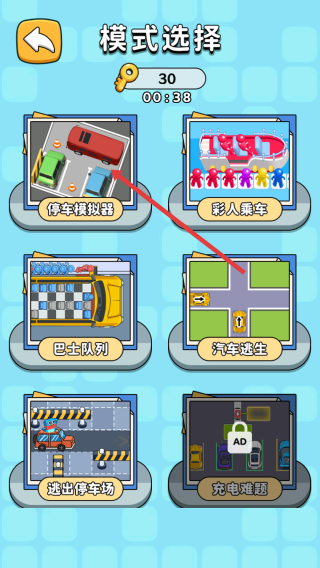 2、模式選擇界面,有停車模擬器、彩人賽車等多種游戲模式,選擇心儀的模式,進入對應關卡。