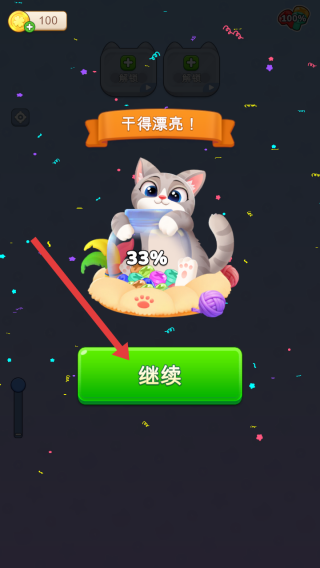 4、成功收集部分螺絲后,會顯示干得漂亮的提示,還有進度顯示點擊繼續可進入后續的游戲環節。