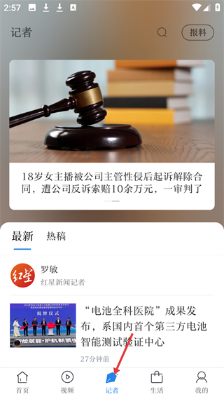 3、記者板塊,展示記者采寫的新聞,如女主播性侵案、電池全科醫院成果發布等,用戶可了解深度新聞報道。