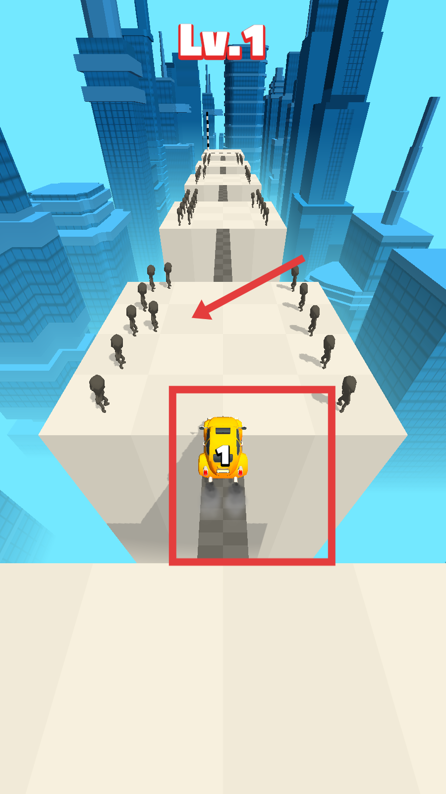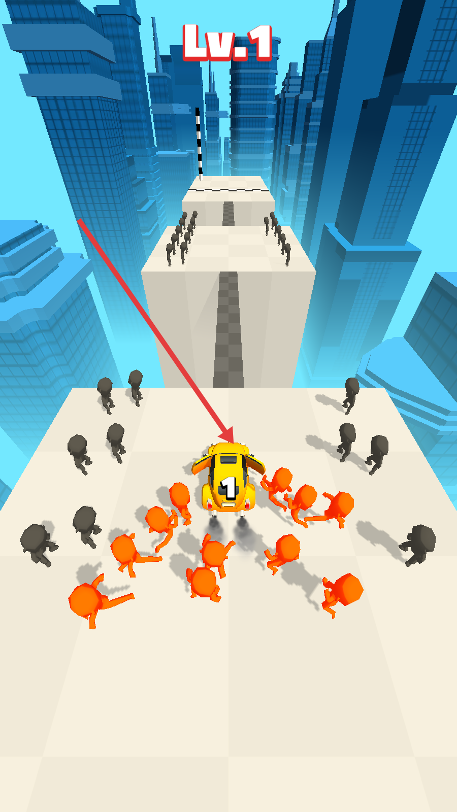 3、游戲過程中按住屏幕,讓車內的小丑下車,利用小丑開路,清除前方的黑色小人障礙松開屏幕,可以召回小丑回到車內。