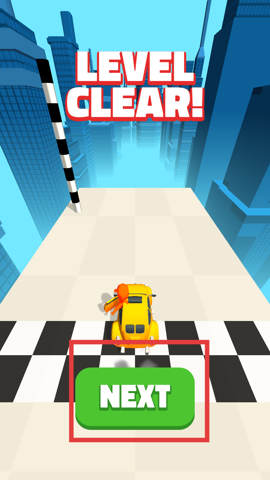 4、當成功操控車輛通過終點線,完成當前關卡后,點擊綠色的NEXT按鈕,進入下一個難度更高、障礙更復雜的關卡。