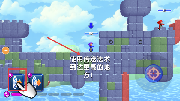 2、點擊屏幕左下角的傳送法術按鈕,消耗法術點數,讓巫師使用傳送法術,瞬移到更高的位置,占據有利地形。