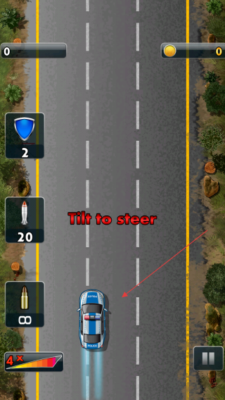 3、在游戲場景中通過傾斜設備來操控警車在道路上的移動方向,躲避障礙物和其他車輛,同時追逐目標車輛。