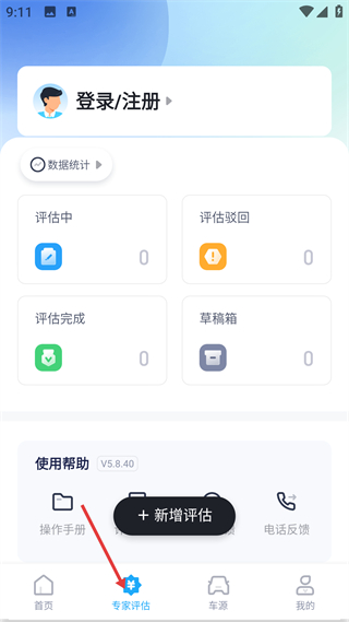 2、專家評估頁,含登錄入口,可管理評估進度評估中完成等,支持新增評估,底部專家評估是專業評估入口。