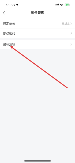 4、進入賬號管理頁面,有綁定單位、修改密碼等選項,點擊賬號注銷,可進行賬號注銷操作。