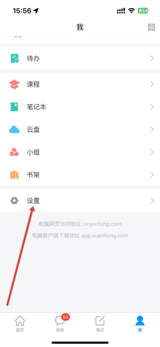 2、進入我的頁面,有課程、筆記本、云盤等功能選項,點擊設置。