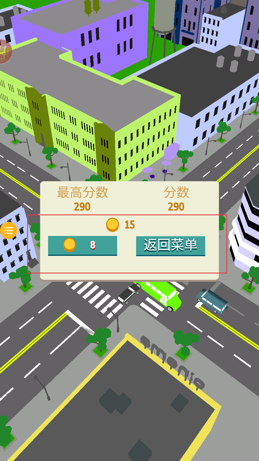 4、如果車輛進行碰撞了即當游戲結束后,若想再次挑戰,可點擊返回菜單,重新進入游戲開始新的競速。