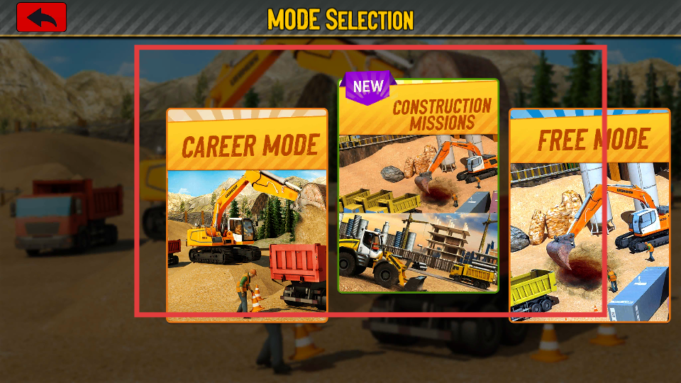 2、進入模式選擇界面,有CAREER MODE、CONSTRUCTION MISSIONS、FREE MODE等選項,可根據喜好選擇模式,不同模式對應不同的挖掘任務和玩法。