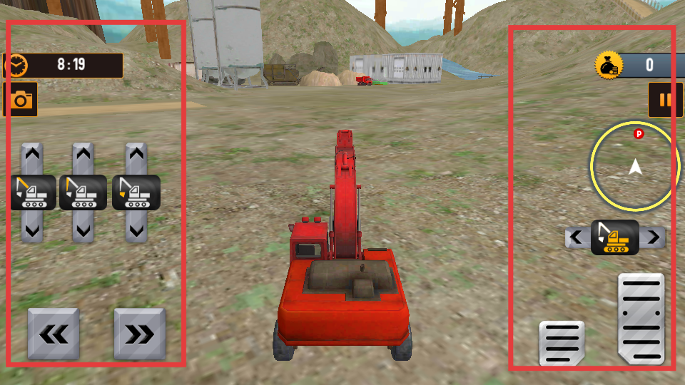 4、進入游戲場景后,左側是操作按鈕,控制挖掘機的移動和挖掘動作,右側有地圖等功能,需熟練操作左側按鈕,操控挖掘機完成挖掘、運輸等任務。