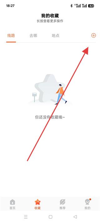 3、進入收藏板塊點擊加號按鈕,可添加線路、去哪、地點等收藏內容,方便后續快速查詢常用的公交信息。