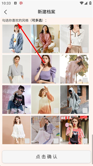 4、新建檔案的風格選擇部分,勾選自己喜歡的穿搭風格樣式,選好所有偏好后點擊確認按鈕,即可完成個人穿搭檔案的創建流程。