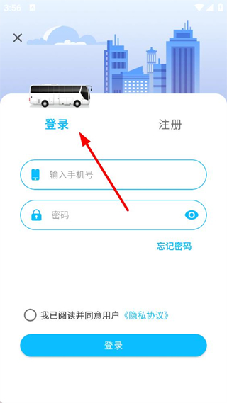 3、登錄界面可輸入手機號和密碼進行登錄,若忘記密碼可點擊忘記密碼找回,登錄前需同意用戶隱私協議,保障用戶信息安全。