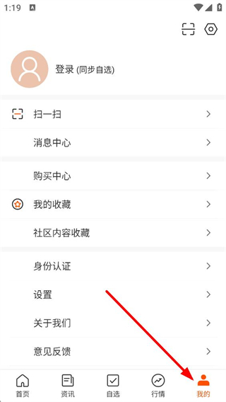 2、點擊底部我的按鈕,進入個人中心界面,可看到登錄入口,還有掃一掃、消息中心等功能選項,便于管理個人相關信息和使用功能。