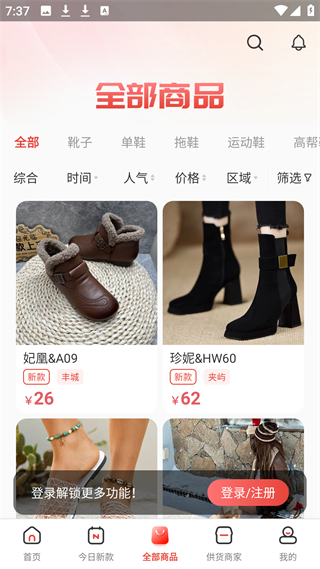 開山網官方移動應用android版,提供選款,發布,分享到朋友圈等功能。北京聚源百成網絡科技有限公司是國內產地貨源的先行者,為廣大用戶提供國內女鞋、箱包、男鞋運動鞋、童鞋童裝等多個網銷貨源平臺。