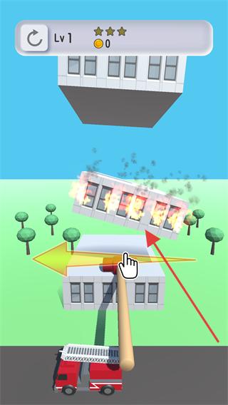 2、根據提示滑動屏幕調整錘子方向,精準對準著火的樓層區域,試圖撲滅大火。