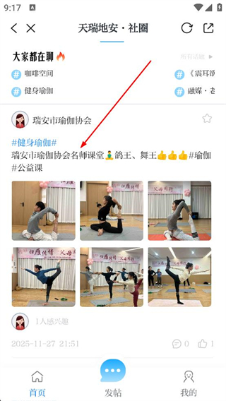 2、在社群主界面瀏覽大家都在聊的內容,查看不同話題下的帖子,選擇感興趣的帖子條目,點擊進入該帖子的詳情頁面,了解內容詳情。