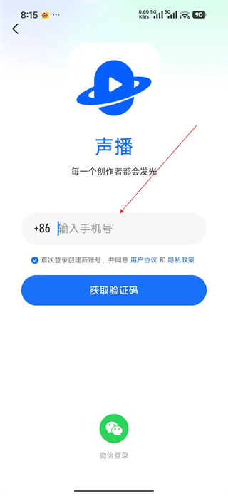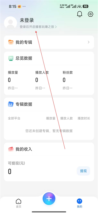 1、打開聲播創作平臺軟件,進入我的頁面,點擊登錄相關入口,進入聲播登錄界面,準備完成賬號登錄。