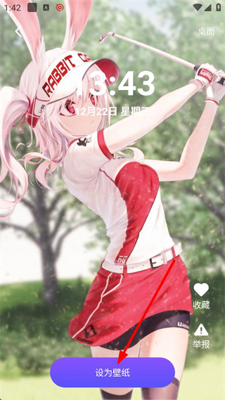 2、進入選定壁紙的詳情頁,可查看壁紙的預覽效果,點擊頁面內的設為壁紙按鈕,會彈出壁紙設置的選項選擇界面。