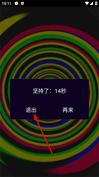 4、挑戰結束后會顯示堅持的時長,界面提供退出和再來選項,可選擇再來按鈕重新參與挑戰。