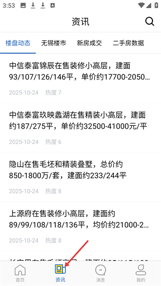 3、資訊頁有樓盤動態、無錫樓市等分類,展示中.信泰富錦辰、隱山等樓盤資訊,可了解無錫房產市場動態。