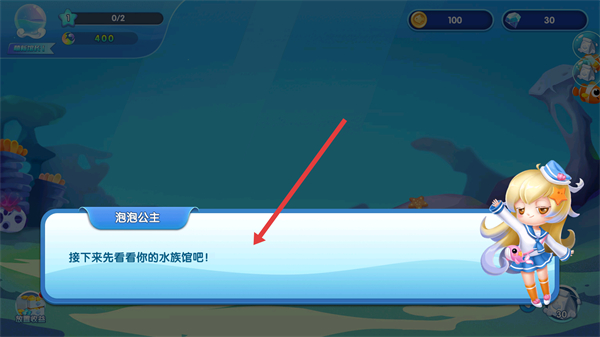 1、會引導你查看自己的水族館,開啟在水族館的經營與探索,了解水族館的初始狀況。