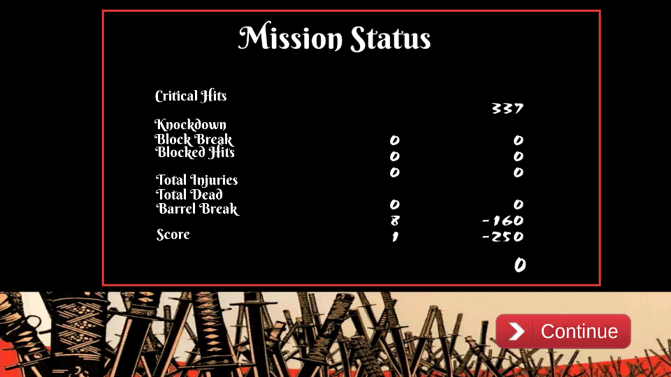 4、戰斗結束后,會展示Mission Status,包括Critical Hits、Score等數據,了解戰斗表現,點擊Continue繼續游戲。