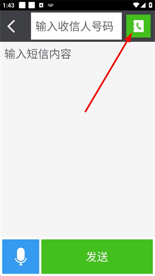 3、短信編輯界面,點擊輸入收信人號碼右側的電話圖標,進入選擇聯系人界面,這個界面里可以從已有的聯系人中挑選合適的收信對象來進行后續操作。