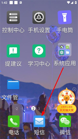 1、打開手機桌面找到短信圖標,點擊該圖標進入短信列表界面,這是參與游戲的第一步,接下來就能按照指引繼續開展后續的操作步驟,為完成游戲任務做準備。
