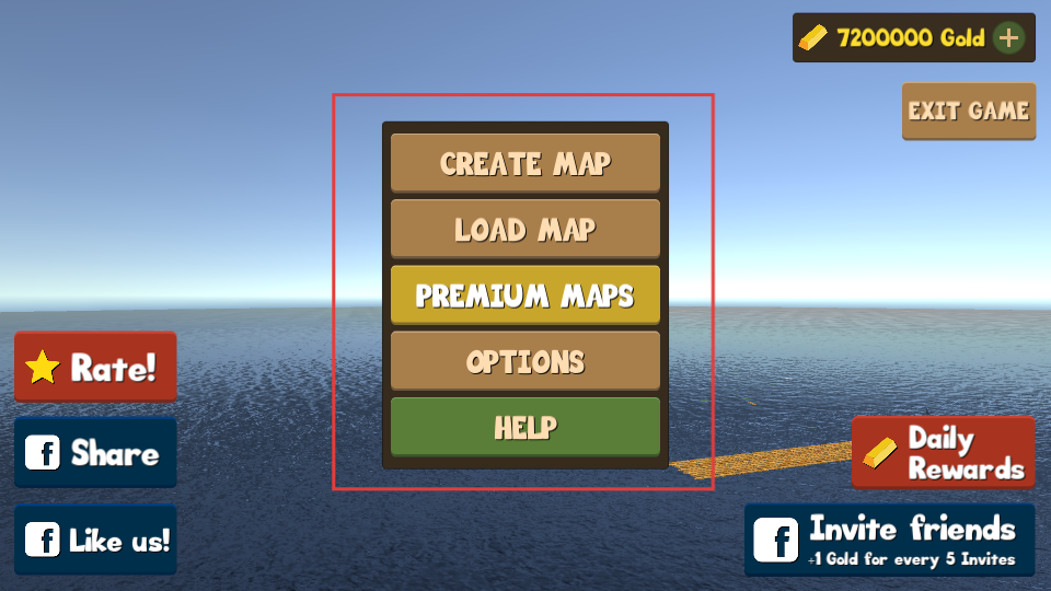 1、主界面有CREATE MAP、LOAD MAP等選項,可選擇創建地圖、加載地圖等,開啟在海上木筏的生存冒險。