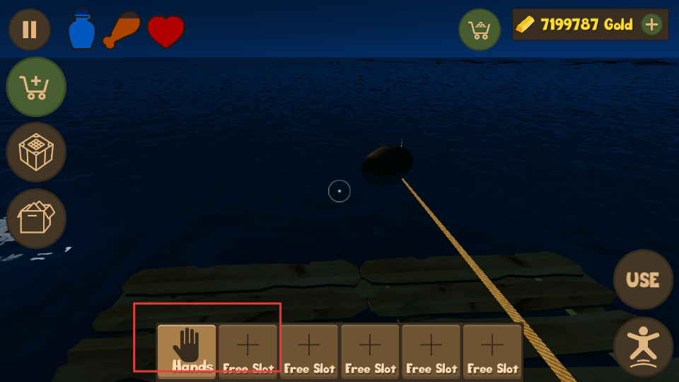 2、在木筏上,可使用鉤子等工具,從水中抓取物品,還能通過相關操作,獲取生存所需的資源,維持在海上的生活。