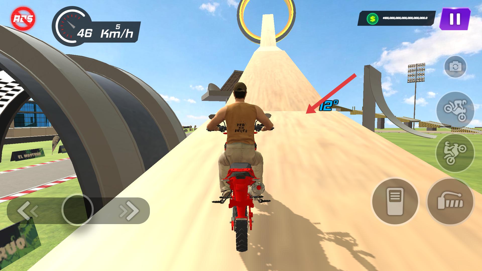 3、遇到坡道等地形時,保持合適的速度,操控摩托車順利沖上坡道,朝著前方的環形目標前進,注意控制好行駛角度和速度。