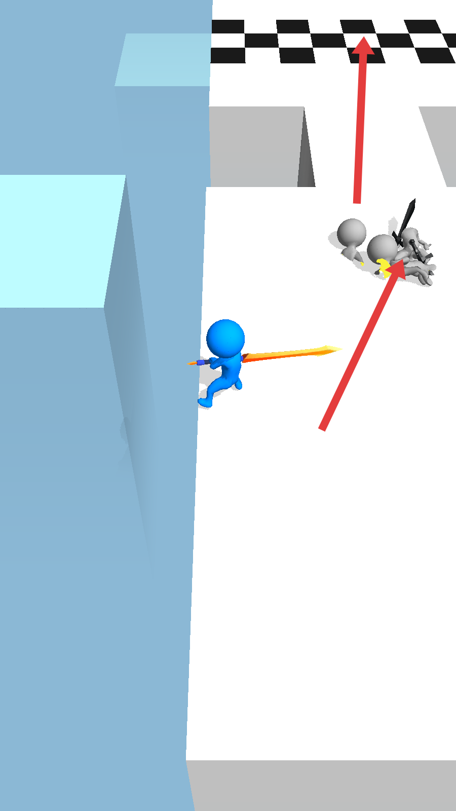 2、在沖刺的過程,遇到敵人時,用劍攻擊敵人,擊敗他們,同時向著關卡終點前進。