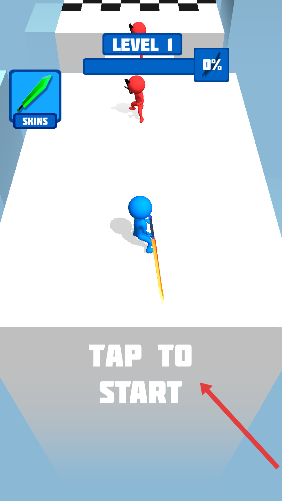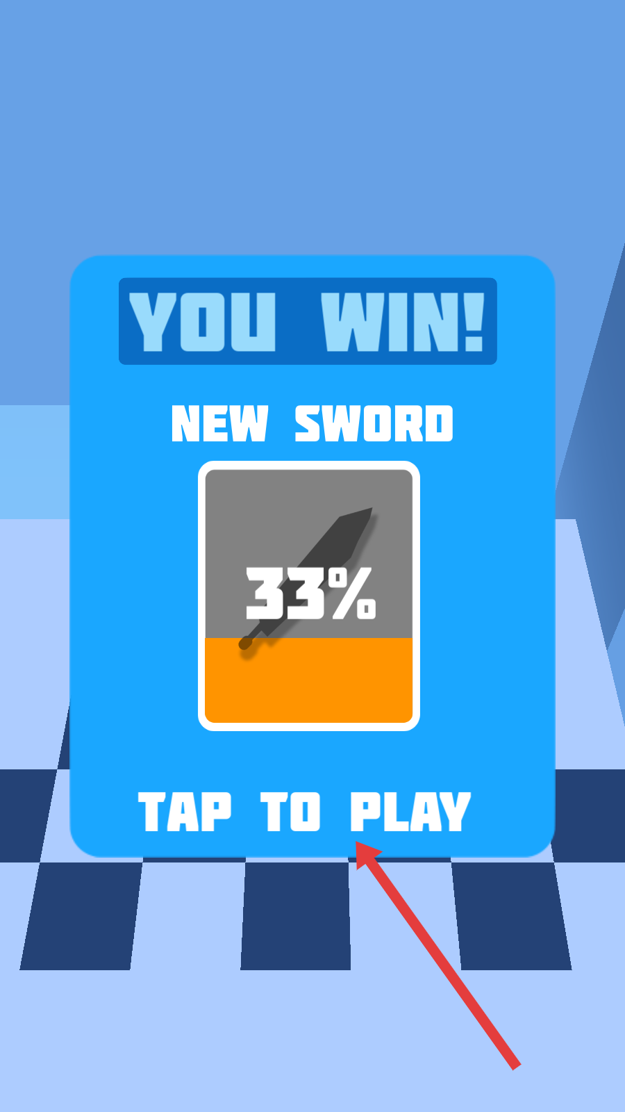 3、成功到達終點后,會顯示你贏了的勝利界面,還能獲得新的劍,點擊開始玩可繼續游戲。