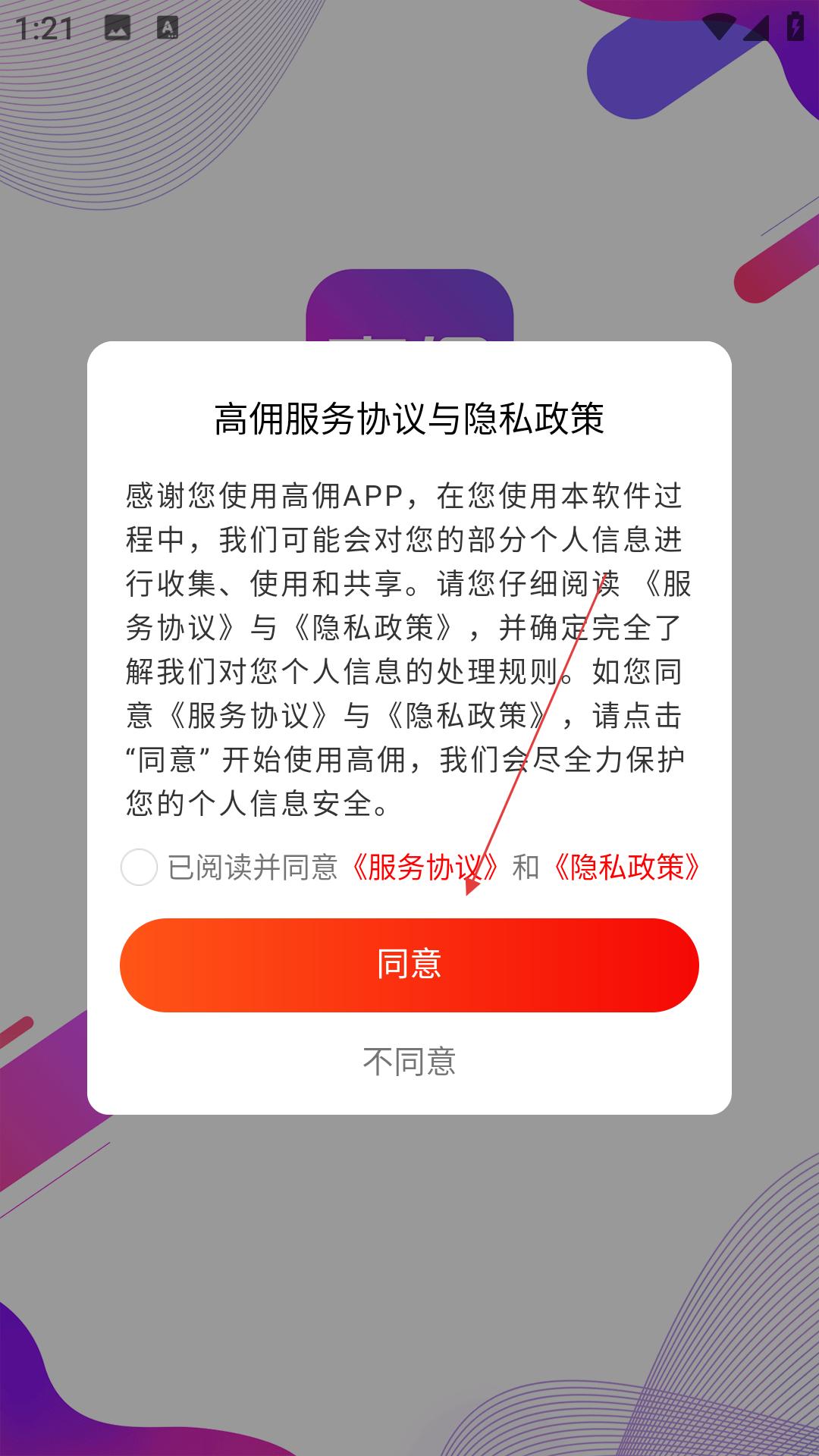 1、下載安裝完成后進入,需在用戶協議和隱私政策界面點擊同意,接受相關條款后才能進入應用。